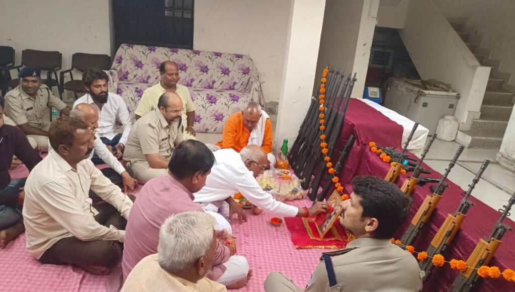दशहरा पर्व पर विधायक विश्वनाथ सिंह पटेल ने की थाना तेंदूखेड़ा में शस्त्र पूजन