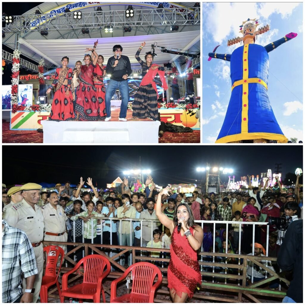 निम्बाहेड़ा। नगर परिषद निम्बाहेड़ा के द्वारा मेला आयोजन समिति के संरक्षक, पूर्व यूडीएच मंत्री एवं विधायक श्रीचंद कृपलानी के निर्देशन में आयोजित 11 दिवसीय राष्ट्रीय दशहरा मेला के दसवें दिन मीरा रंगमंच पर बुधवार की रात एक रंगारंग सांस्कृतिक संध्या का आयोजन किया गया। डीएस इंटरटेनमेंट उज्जैन के बैनर तले आयोजित इस कार्यक्रम में गीत, संगीत और नृत्य प्रस्तुतियों ने उपस्थित मेलार्थियों को मंत्रमुग्ध कर दिया। नगर परिषद आयुक्त कौशल कुमार खटूमरा ने बताया कि कार्यक्रम की शुरुआत एंकर खुशबू कपूर के स्वागत संबोधन और जोशीले अंदाज से हुई, जिन्होंने पूरे कार्यक्रम के दौरान अपने प्रभावी संचालन से दर्शकों को बांधे रखा। इसके बाद एक्ट्रेस एवं प्लेबैक सिंगर अमिका शेल ने अपनी मधुर आवाज में लोकप्रिय गीतों की प्रस्तुतियां देकर दर्शकों का दिल जीत लिया। उनके सुरों ने मंच और दर्शक दीर्घा दोनों को झूमने पर मजबूर कर दिया। इसी कड़ी में इंडियन आयडल फेम महेश मोयल और सारेगामापा फेम सिंगर ने अपनी दमदार गायकी से कार्यक्रम में और उत्साह भर दिया। मोयल की गायकी में जहां रूमानी स्पर्श था, वहीं उनकी ऊर्जावान प्रस्तुतियों ने श्रोताओं को बार-बार तालियां बजाने पर विवश किया, इसके साथ ही दिल्ली की चर्चित आइटम परफॉर्मर सेम ने अपने दमदार डांस परफॉर्मेंस से मंच पर ऊर्जा का संचार कर दिया। भोपाल से आए डांस ग्रुप ने भी शानदार कोरियोग्राफी के साथ समूह नृत्यों की प्रस्तुतियां देकर समां बांध दिया। रातभर चले इस सांस्कृतिक समारोह में हजारों मेलार्थी मौजूद रहे जिन्होंने तालियों और हूटिंग से कलाकारों का उत्साहवर्धन किया। कार्यक्रम के अंत तक दर्शकों की भीड़ जमी रही और हर प्रस्तुति का भरपूर आनंद लिया गया। राष्ट्रीय दशहरा मेला के दसवें दिन मीरा रंगमंच पर आयोजित सांस्कृतिक कार्यक्रम का शुभारंभ नगर एवं क्षेत्र की प्रमुख सामाजिक एवं स्वयंसेवी संस्थाओं के अध्यक्षों एवं प्रतिनिधियों के द्वारा दीप प्रज्वलित कर किया गया। आरम्भ में श्री कल्लाजी वेदपीठ के कैलाश मूंदड़ा, लायंस क्लब के नानालाल भूतड़ा, महावीर इंटरनेशनल के विकास पटवारी, वीरा केन्द्र पद्मिनी सरोज ढेलावत, अनिता सोनी, प्रीति खेरोदिया, सर्व व्यापार मंडल पुष्कर सोनी, हेल्पीング हेंड सोसायटी निश्चल नाथ, प्रबुद्ध नागरिक सेवा संस्थान मांगीलाल मेनारिया, पेंशनर समाज यशवंत राव कदम, तेजस्वनी क्लब वर्षा कृपलानी, श्रीराम सेवा संस्थान मदनलाल सुखवाल, श्री सेवा संस्थान बालमुकुंद राठी, पल्लवन संस्था कुलदीप सिंह झाला, समाजसेवी महेश गोयल, कुलदीप नाहर आदि सहित विभिन्न समाजसेवी एवं स्वयंसेवी संस्थाओं के प्रतिनिधियों ने दीप प्रज्वलन एवं मां शेरावाली के चित्र पर मा